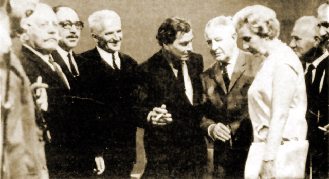 Twenty-eight years following the abduction of General Karl Kreipe, Kreipe and his wife visited Greece in 1972 and the stage of operations in Crete. In this picture we see Kreipe flanked by surviving guerrillas while talking to Leigh Fermor.