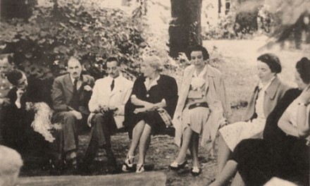 The writers who were associated with the publisher and the magazine—Károly Kós, Aladár Kuncz, Károly Molter, Jenoý Dsida, Benoý Karácsony and many others—annually gathered in János Kemény’s château in Marosvécs. On these occasions, Karola’s attendance could always be taken for granted, and all the memoirs name her as the spirit of the company. (below Karola is fourth from right)