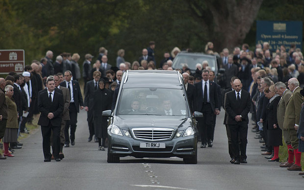 In accordance with the Dowager Duchess’s wishes, the estate staff lining the route of the cortège wore their work uniforms, with butchers turning out in aprons, gardeners in their green sweatshirts and tour guides in their crested blazers. All wore either a black tie or black armband.